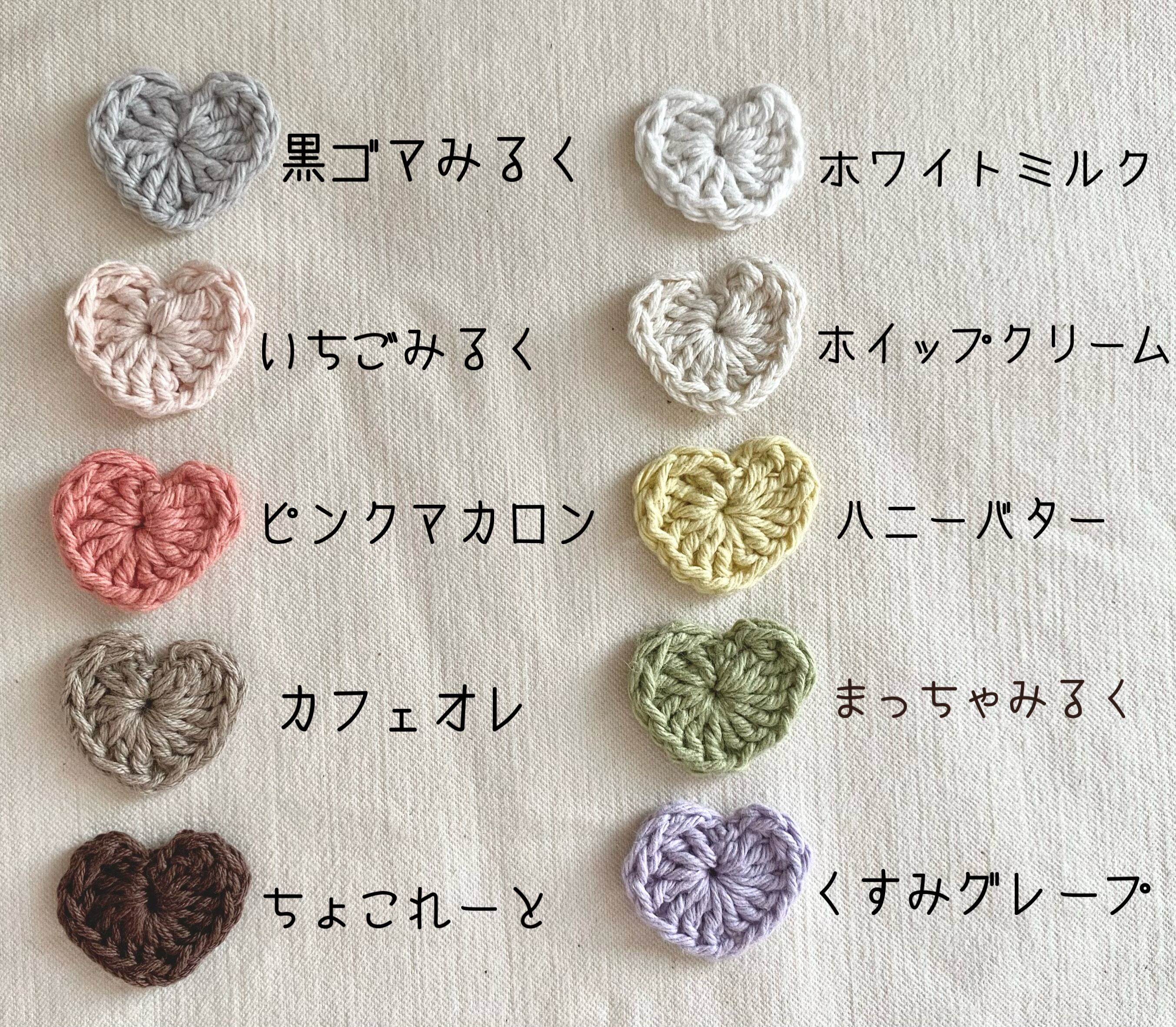 グレー、カフェオレ、わかばはすべてコットン100%糸を使用